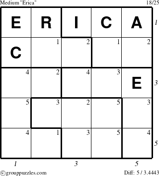 Place each element of the group (E R I C A) exactly once in each row, each column, and each pentomino.