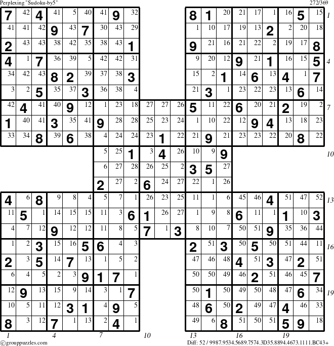 - The only spot left for 5 in the 7th 3x3 square in the lower left puzzle is at (1, 20).