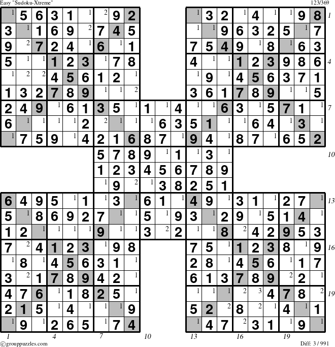 - The only spot left for 3 in the 7th 3x3 square in the upper right puzzle is at (15, 9).