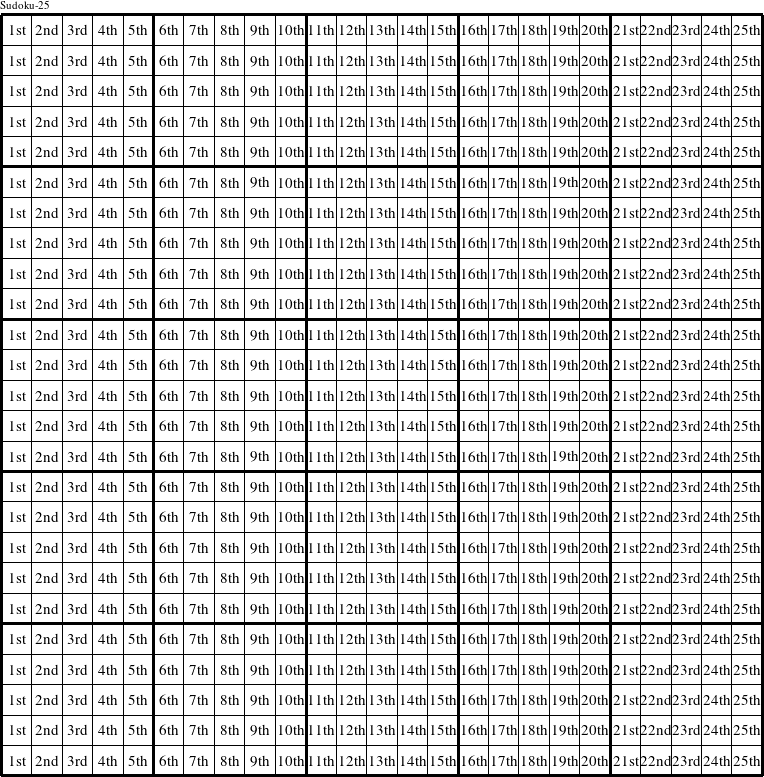 In a Sudoku-25 puzzle, each row is a group numbered as shown in the figure above.