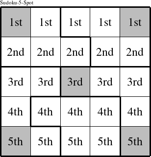 In a Sudoku-5-Spot puzzle, the five shaded spots are a group and are marked with '1st' in the figure above.