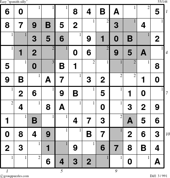 - The only spot left for 1 in the 12th 4x3 rectangle is at (9, 12).