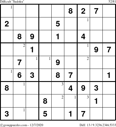 There are 13 steps required to solve the puzzle above with a total of 52 empty locations that must be determined .