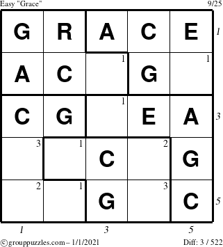 Place each element of the group (G R A C E) exactly once in each row, each column, and each pentomino.