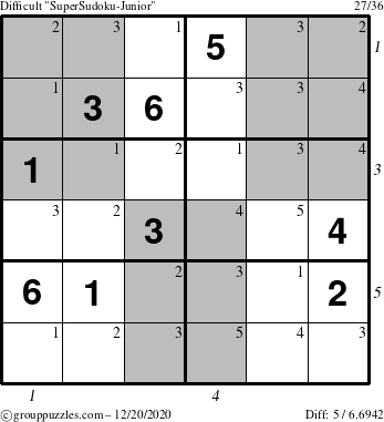 - The only spot left for 1 in the 6th 2x3 rectangle is at (5, 4).
