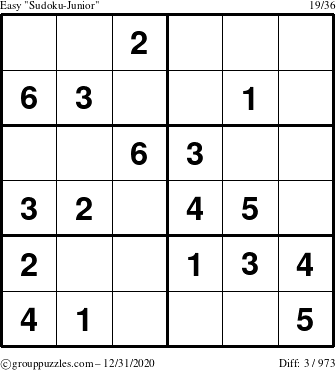 Display the puzzle with superscripts showing the step number for the first 3 steps in their empty grid location.