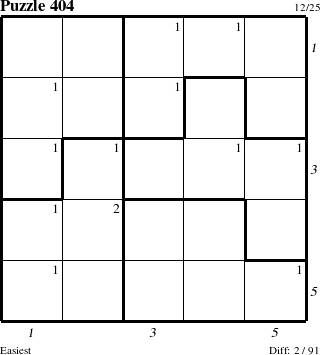 Variations on Junior Sudoku Logic Puzzles (Vol 1)Step-by-Step Instructions for Puzzle 404 (12/25)Diff: 2/91Printable puzzle or puzzle with instructionsThe numbers in the puzzle below refer to the step number at which the value of the location can be deduced. Locations without step numbers contain the initial values found in corresponding puzzle in your edition of the book. | |
